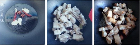13、大火烧开转入火煮至水份收汁大肉出油,最后加适量盐味素调味即可;