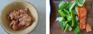 1、鸡胸肉切片,加少量油加淀粉抓匀腌制片刻。
