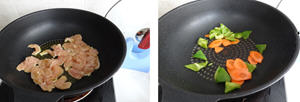 6、鸡片炒8成熟后,盛出备用,放入尖椒和胡萝卜翻炒,变色即可。