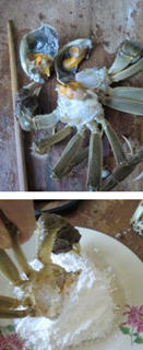 3.螃蟹的切面沾裹一些淀粉,可以保证螃蟹的蟹黄不流失。