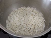 1.大米清洗干净,将煮饭锅底抹点油,不抹也可;将清洗干净大米倒入;中大火煮开后,再煮两分钟,转小火焖三十分钟,至米饭煮熟。
