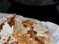 3.油温要达到丢下一小块锅巴,立即泛起,这是最佳温度。否则炸不酥,或炸焦了