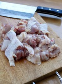 3.鸡配蒜头是相当香的,葱可用,可不用。