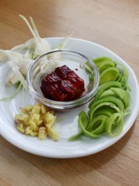 3.备好腐乳、生姜、蒜头和蒜苗。