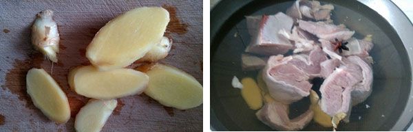 配料:入生姜片、香叶、桂皮、八角、料酒