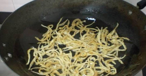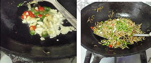 3 然后用开水把鱼烫一下,捞出沥干水分备用。4-5 炒锅中放油,下入银鱼干小火煸炒至无水分时盛出备用。