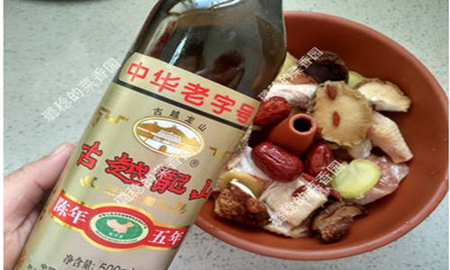 配料:姜片、4、5粒白胡椒粒,干鲍鱼两只、枸杞、干香菇、红枣三颗,花雕酒