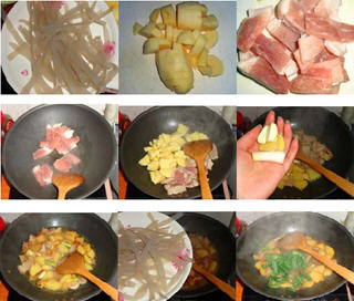 2.粉条最后加入,用中火焖制,否则粉条就会变成糊糊状、失去弹性。