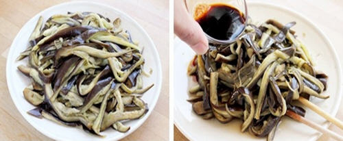 这道手撕鱼香茄子是用最传统的方法将茄子先切成粗条上锅蒸熟,然后撕成细条,拌上料汁,最后浇上香料油上桌。这样既避免营养成分的流失,做出来的茄子吃起来丝滑顺口,非常的绵软