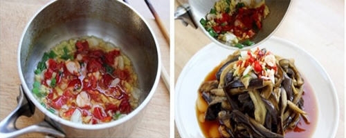 8.趁热将香料油浇到茄子上,这道菜就完成了。