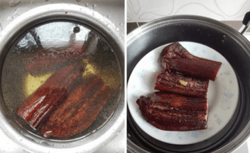 2、腊肉用热水浸泡20分钟,清洗一下,上锅蒸,开锅后蒸25分钟;