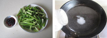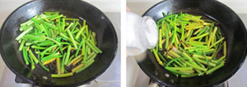 1、焯蒜薹时加入点盐和油,能保持蒜薹的色泽;