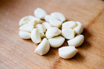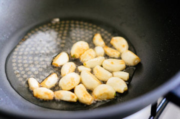 6、把蒜瓣放入炸到略微金黄色捞出;