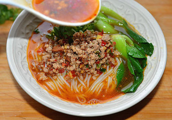 主料:米粉1把,猪肉末300克,牛肉酱2大勺,青菜芯几颗,香菜1根,小葱2根