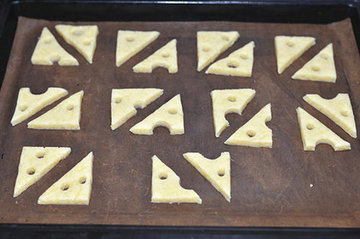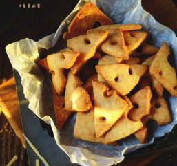 奶酪火锅人们熟知,但是用大大孔奶酪做饼干也是相当好吃的,制作时饼干不要擀的太薄,否则容易变形,烤的时候注意饼干烤至金黄时即可。