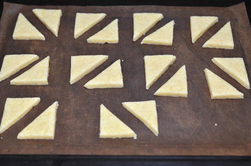 10、切好后移入烤盘中,注意饼干间要保留间距。