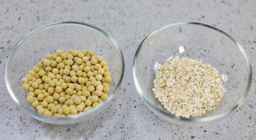 主料:干黄豆75克,燕麦片(快熟或即食均可)15克,牛奶1小盒(200-250ml)