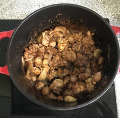 四、烹制时间一定要短,连炒带焖不要超过5分钟,不要担心不熟,鸡块小,很容易熟,珐琅锅在关火后也会保持足够的热力继续将鸡肉焗至全熟。