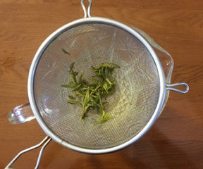 2.绿茶加热饮用水220ml冲泡,过滤出茶叶,入冰箱冷藏。