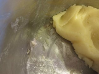 泡芙做法:无盐奶油、糖、盐、牛奶、水放入锅中煮至沸腾,即离火加入高筋面粉拌匀