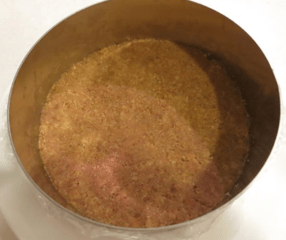 蛋糕做法:消化饼装入袋中,用擀面棍压成碎屑,再与隔水加热融化的无盐奶油拌匀,倒入慕斯模中并用力压平(慕斯模底部垫一平盘),放冷藏备用