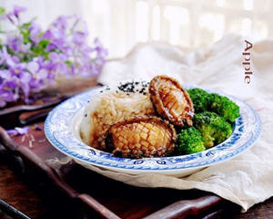 主料:米饭1碗、鲍鱼2个、西兰花适量