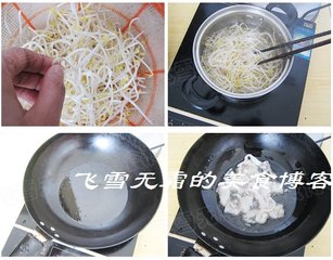 5,这时我们要去除豆芽的根部,豆芽的选择,不要选择过于长的.另外由于根部会口感上差一些,所以要把根择干净.我用的是绿豆芽.