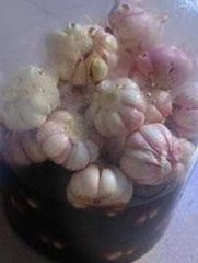 3、清理干净的蒜骨朵用清水泡一夜,是为了去除蒜的辛辣味,晾干。