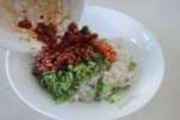 8、尝尝味放入少量的盐和少许的味精拌匀即可食用。