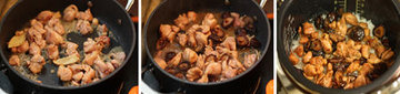 快熟的时候,把炒好的香菇鸡块连同少量汤汁一起倒入米饭,盖盖子继续焖煮到熟。