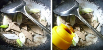 (5)然后,合入焯好的猪肝翻炒一下。