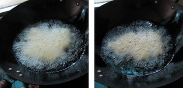 3、炸过程中要多翻面,防止炸湖,炸金黄色,香脆即可捞起。