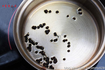 2、炸完的花椒一定要捞出来,要不吃的时候您就得不断的挑花椒了。