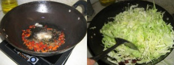 3、炒甘蓝千万不要放水,那样甘蓝就成煮的了,吃起来很难吃的!