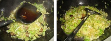 6、翻炒的同时,加入一勺酱油,给它添上点颜色;