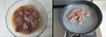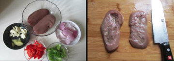 这道双椒爆腰花的家常法中火要大,而且青椒和红椒爆炒时间不易太久,脆一点口感更好吃。