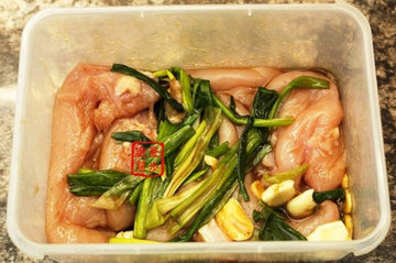 4、将鸡肉与腌制调料混合均匀,静置1小时,隔夜当然更佳入味一些。
