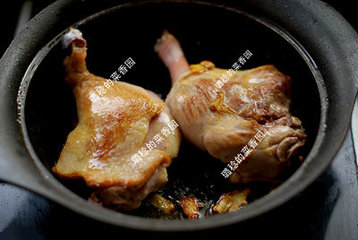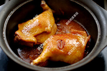 7、盖上锅盖,继续焖上小火7、8分钟,期间翻翻面,令鸭腿入味。
