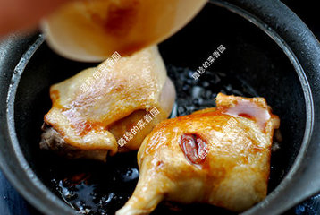 6、把鸭腿肉翻一翻,让每一面都蘸上照烧汁。