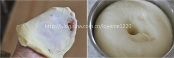 1.面团揉到可以拉成薄膜的状态,有一点儿破没有关系,这样就可以了