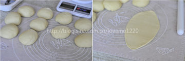3.发好的面团均匀分成10分,滚圆松弛15分钟