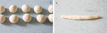 4. 取一个松弛好的小面团,搓成长条。案板和手上可以事先抹些油防粘;