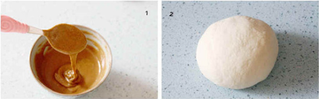 2. 将饼皮的材料混合,揉成一个光滑的面团,然后盖上保鲜膜或者放在密闭容器中,松弛30分钟。室温较低的话,可以使用温水,先将酵母溶解在一部分温水中,再与粉类混合,帮助发酵;