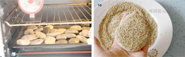 配料:食用油10~12g,盐 1~2g,清水135g,清水少许,白芝麻适量