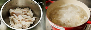 1、牛筋解冻后冲净干净并切成小段,锅内注入足量水,放入牛筋大火煮开