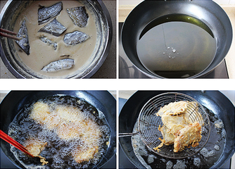 4、锅中放油,油六成热时,将带鱼放入,炸至金黄捞出沥干