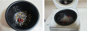 3. 将洗干净的原材料放入电饭煲中。