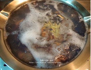 2.煮一锅水,水滚之后放入蛤蜊、姜丝。