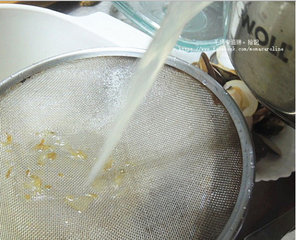 5.取一滤网将柴鱼、姜丝等沥出即为海鲜高汤。