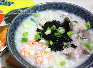 11.食用前再加上海苔丝,一碗鲜美的海鲜粥就完成。